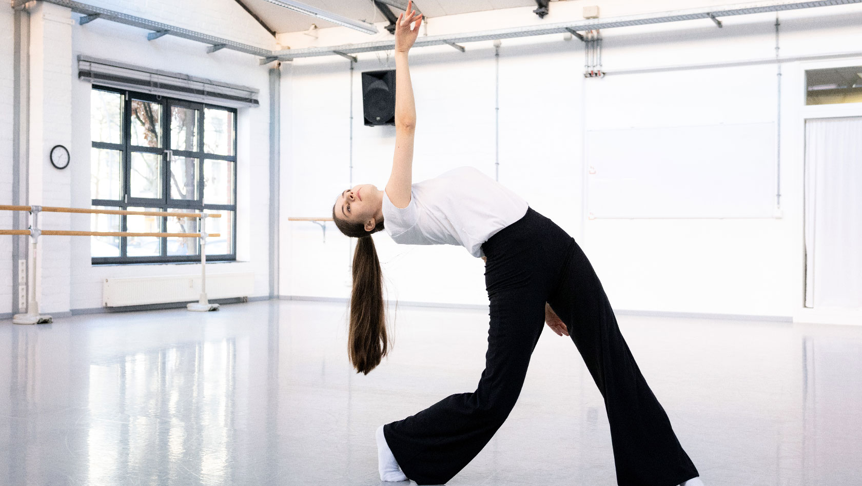 Das Gebäude in der Daimlerstraße 71 a in Hamburg-Bahrenfeld bietet neben zwei großzügigen, lichtdurchfluteten Tanzstudios mit professionellem Schwingboden einen einladenden Theorieraum, eine gut ausgestattete Bibliothek sowie einen großzügigen Aufenthaltsbereich mit gemütlichen Sitzgelegenheiten und einer Küche.